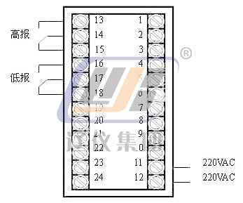 ● 報警控制:高限報警,低限報警, 報警燈及相應(yīng)的繼電器輸出,同時伴有聲響和數(shù)字閃爍,當(dāng)用戶確認(rèn)后,按消音鍵可消除聲響和數(shù)字閃爍。